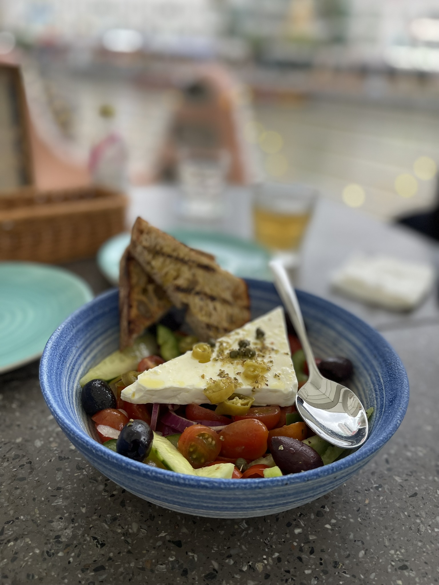 Zorba The Greek Taverna招牌是烤肉,老實說烤的不錯,牛肉大概五分熟,完全沒有血,入口軟嫩;但今天第一名是沙拉,因為那盤肉食份量不小,吃到最後有點膩,沙拉吃起來清爽多了;但烤魷魚腳不行, 大是挺大的,但肉質沒有彈性,台灣鹹酥雞攤大勝。